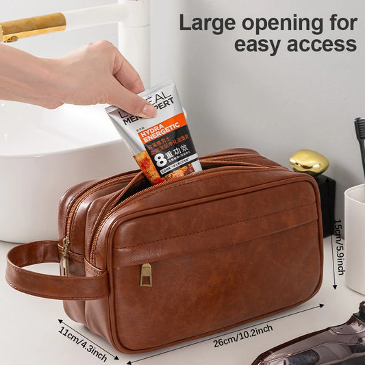 Men's Large Toiletry Bag, Water-Resistant PU Leather Dopp Kit